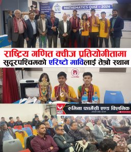 राष्ट्रिय गणित क्वीज प्रतियोगीतामा देशभरका दर्जनौ विद्यालयलाई पछि पार्दै सुदूरपश्चिमको एरिष्टो माविलाई तेश्रो स्थान