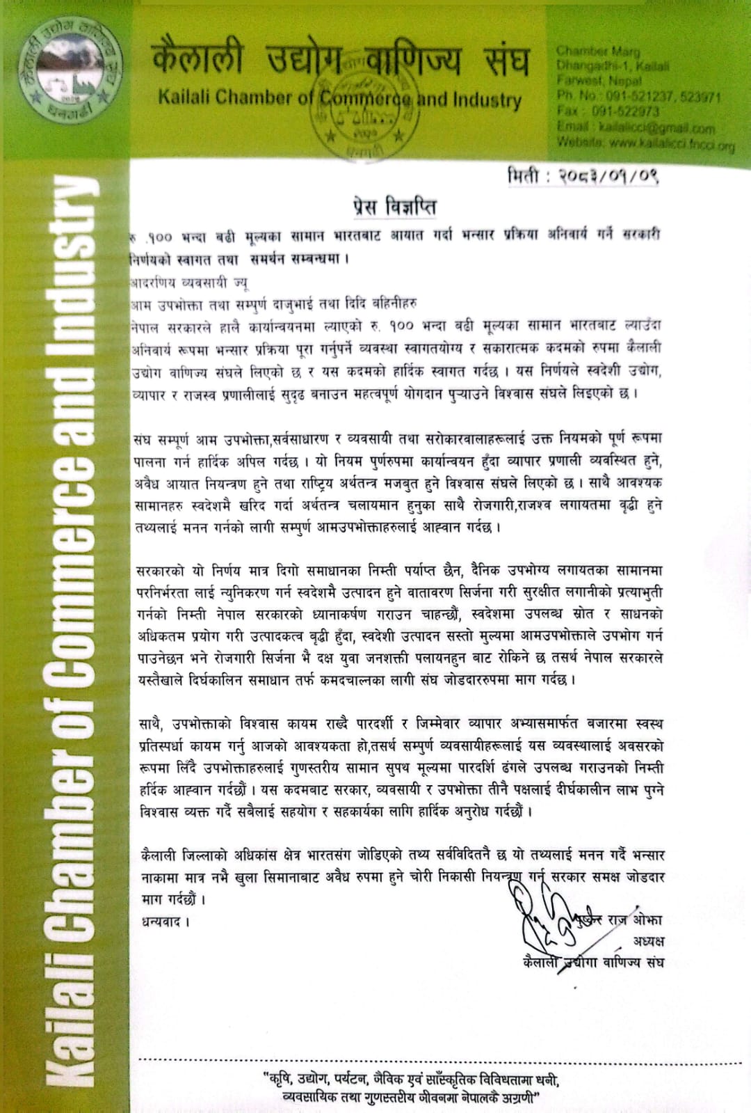 व्यवसायी पुष्पराज कुँवर सुदूरपश्चिम उद्योग वाणिज्य महासंघको अध्यक्षमा निर्विरोध चयन