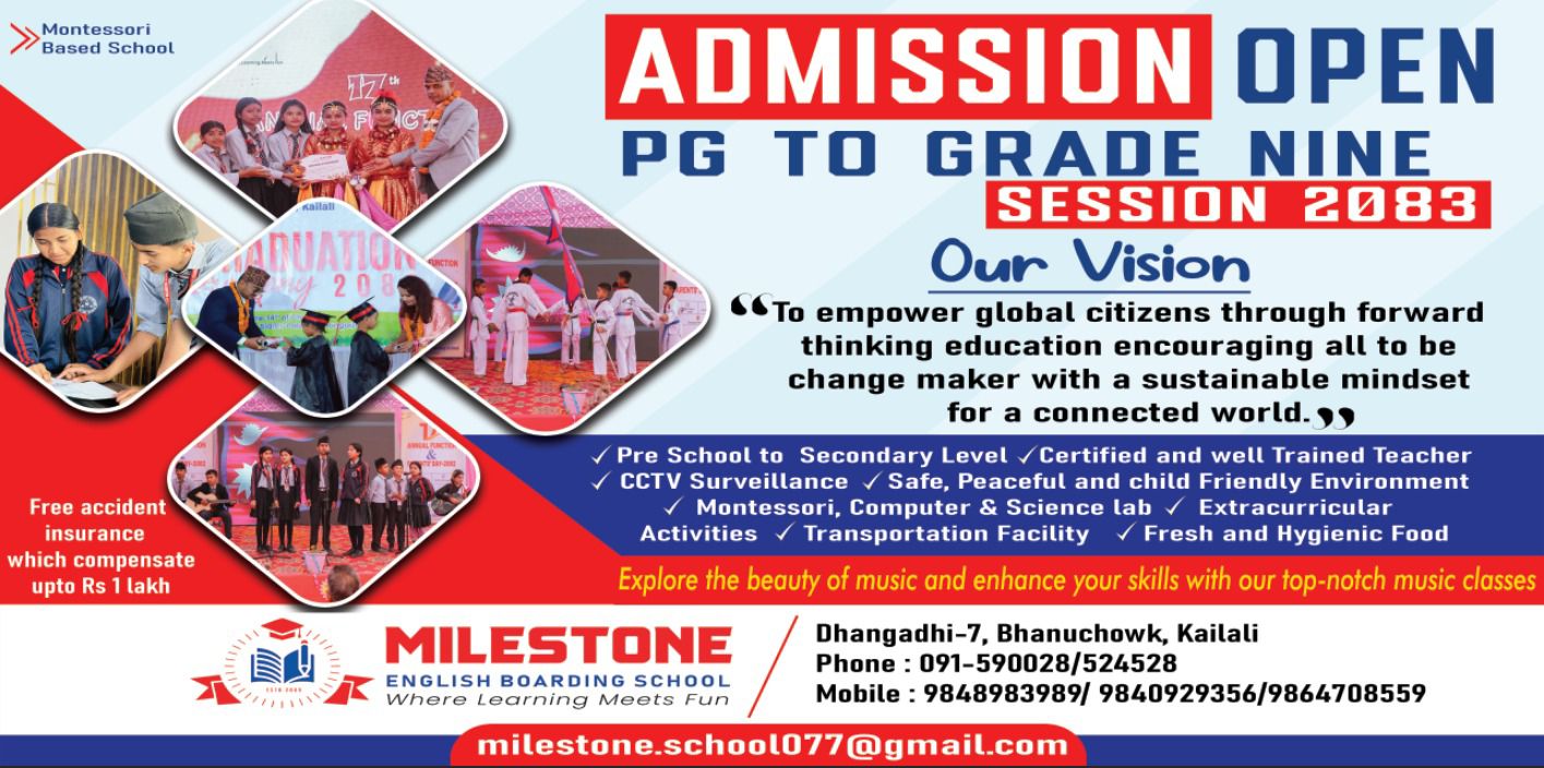 धनगढी, वैशाख ११ : सुदूरपश्चिमको प्रतिष्ठित शैक्षिक संस्था एरिष्टो इङ्गलिस बोर्डिङ स्कुलले आधुनिक शिक्षा प्रणालीमा आफूलाई पूर्ण रूपमा ‘एआई-मय’ बनाउँदै...