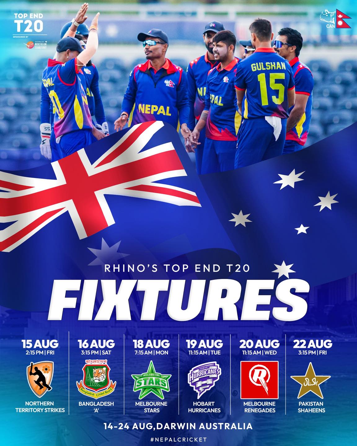 नेपाली क्रिकेट टोलीले अस्ट्रेलियन टप एन्ड टी–२० सिरिजमा खेल्ने खेलहरूको तालिका पनि सार्वजनिक भइसकेको छ। नेपालसहित ११ टोली सहभागी यस सिरिजमा नेपालले लिग चरणमा ६ खेल खेल्नेछ।