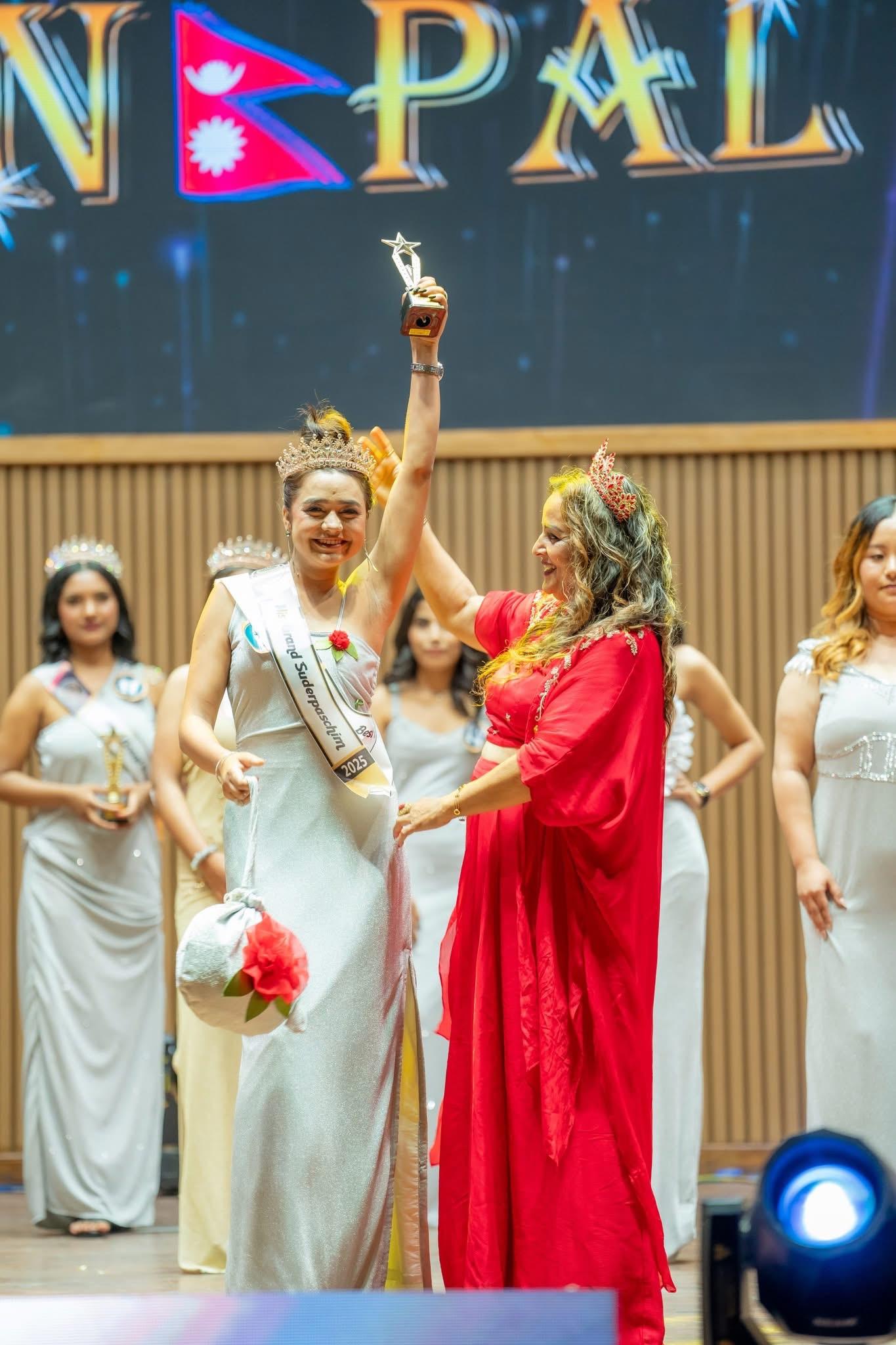 दुई विधामा अवार्ड जित्दै उनले मुकुट (क्राउन) पनि प्राप्त गरिन्। डडेल्धुरा जिल्लाको गन्यापधुरा गाउँपालिका–३, सकायल मा जन्मिनुभएकी देउवा धनगढीस्थित एसपीए कलेजबाट प्लस टू अध्ययन सकेकी हुन्। मिस ग्रान्ड नेपालको अडिसनबारे फेसबुकमार्फत जानकारी पाएपछि उनी प्रतियोगितामा सहभागी भएकी थिइन्। सबैको साथ प्रेरणा हौसला सपोर्टका कारण आज यहाँसम्म पुगेको बताएकी छन । विजयपछिको आफ्नो प्रतिक्रिया सामाजिक सञ्जालमार्फत सार्वजनिक गर्दै उनले लेखेकी छन् एक निडर, आवाजवाली र आत्मविश्वासी मिस ग्रान्ड नेपाल २०२५’ को उपाधि नेपाल सुदुरपश्चिम प्रदेशबाट विजेता भएकी छु ।