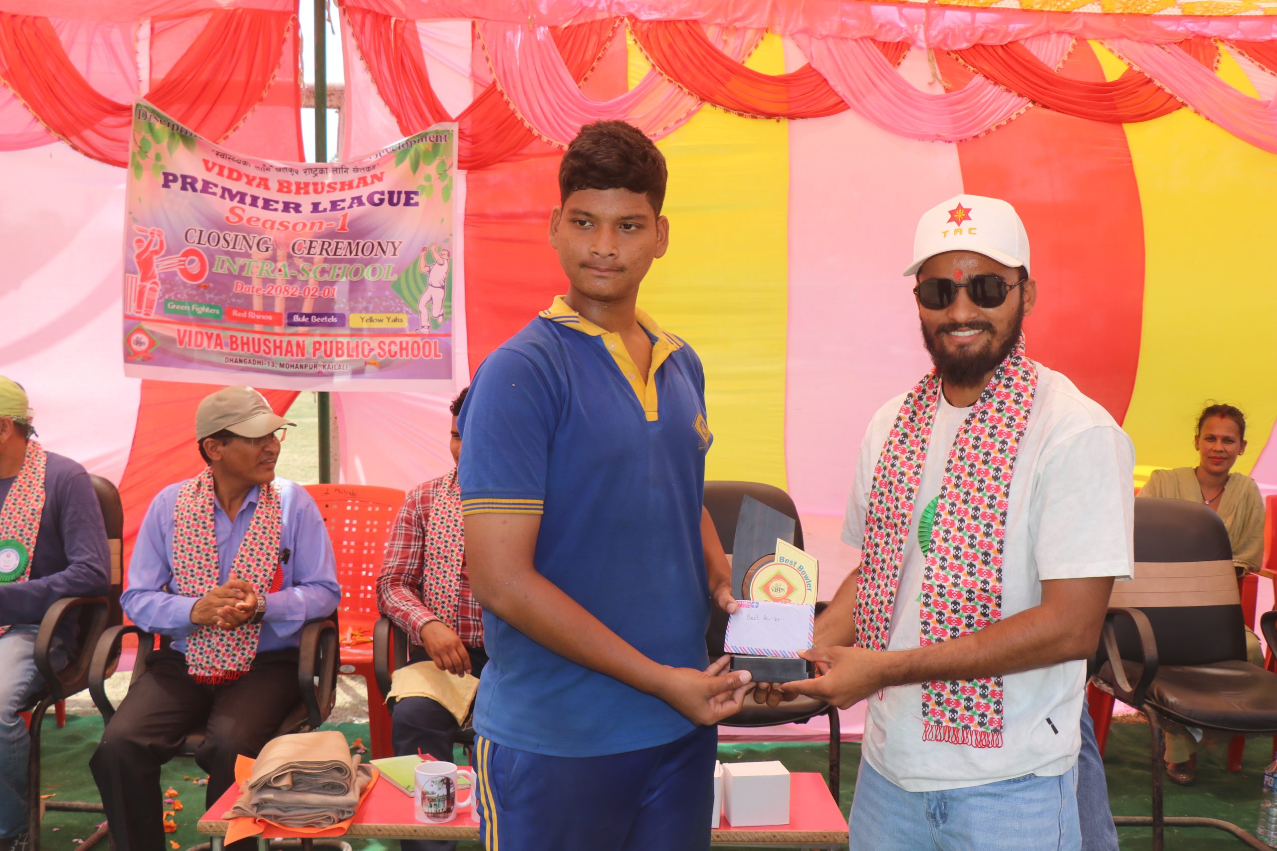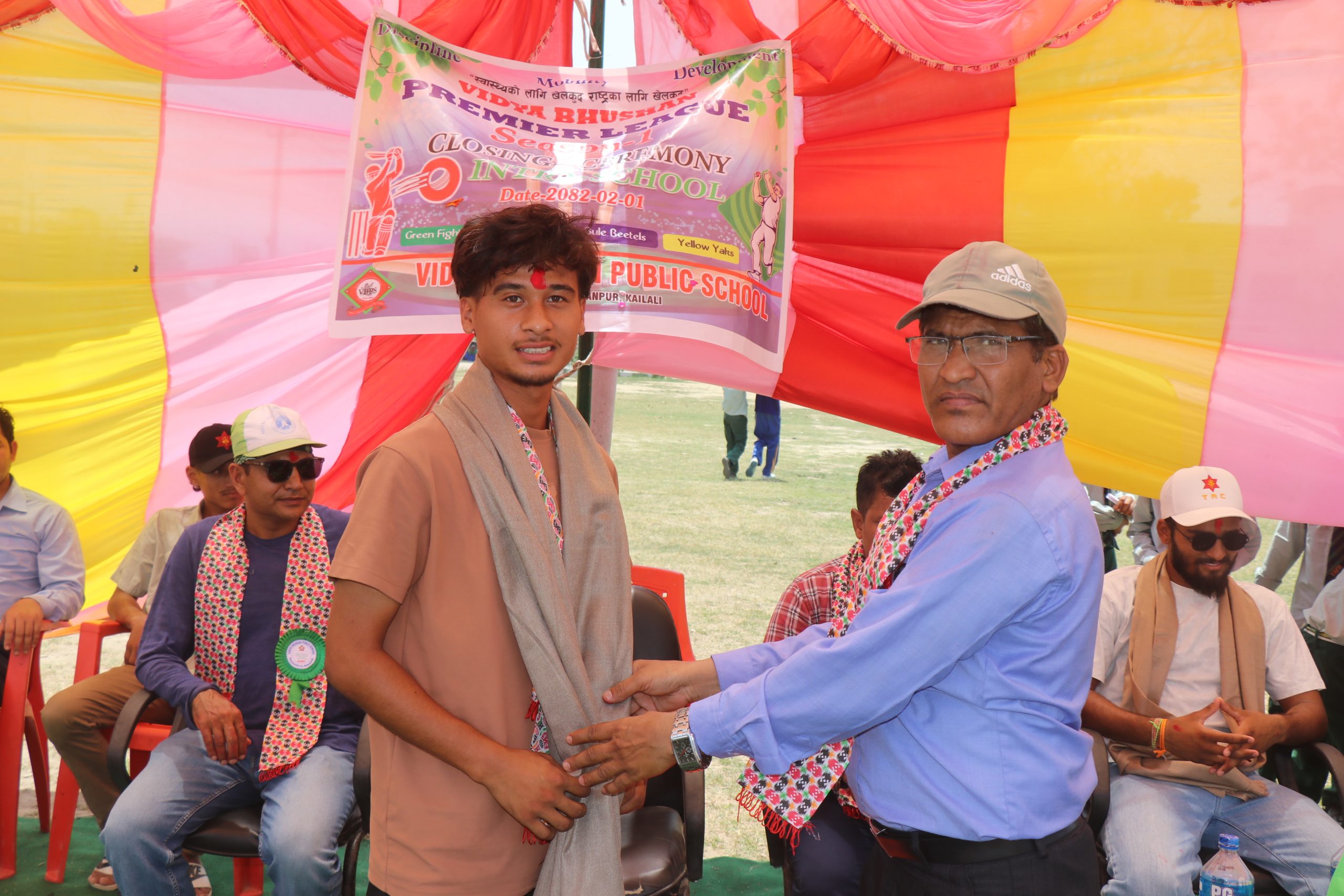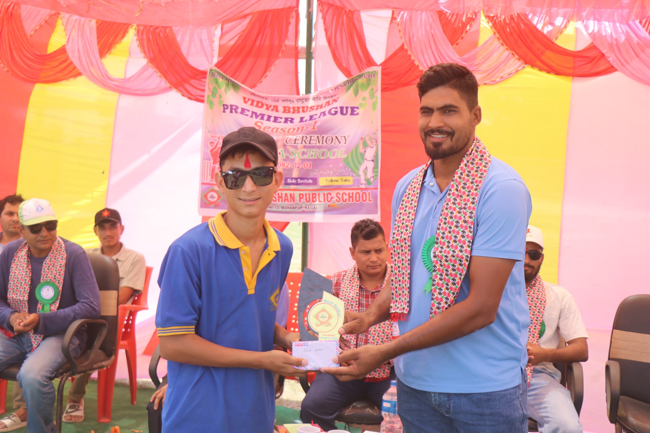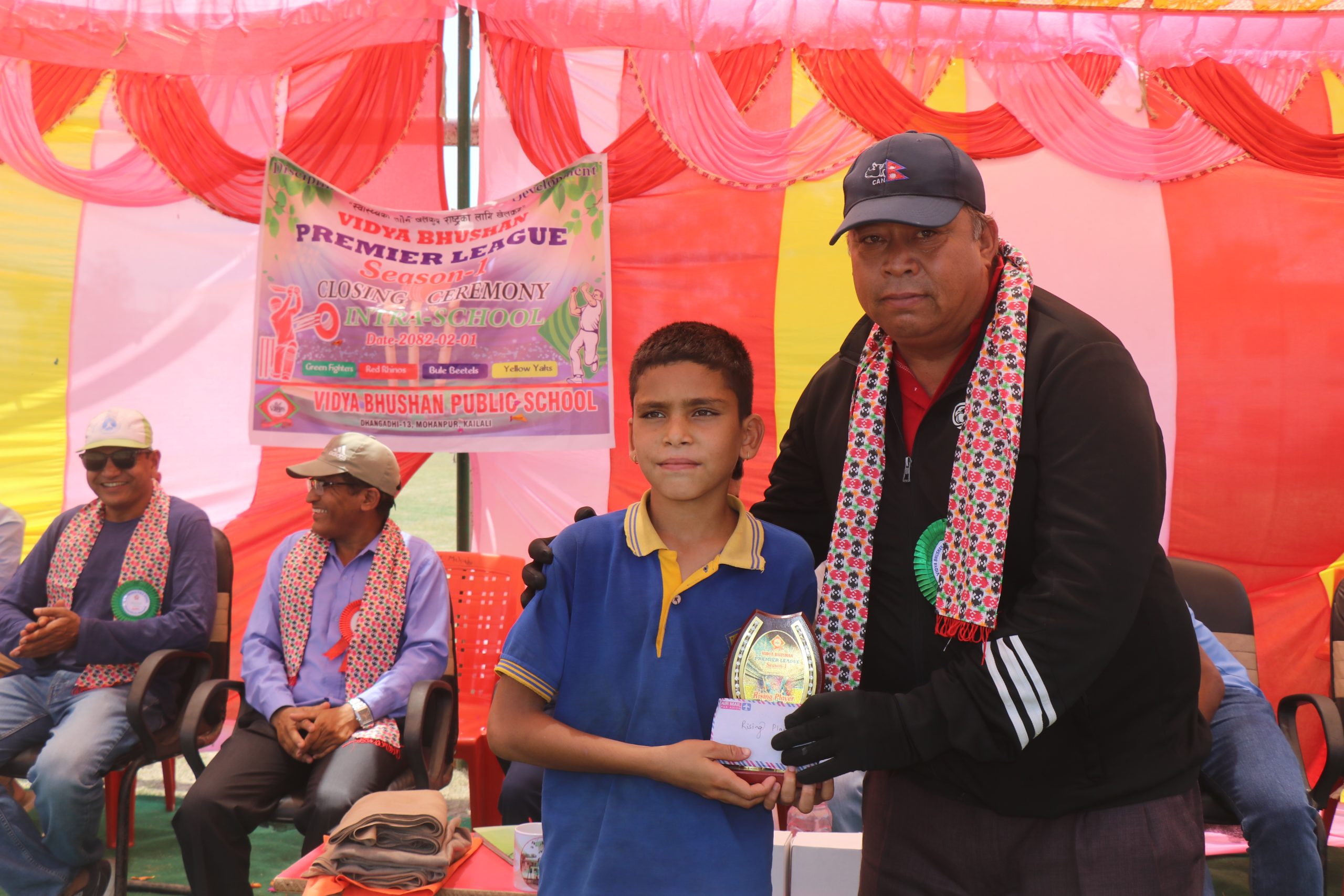 त्यस्तै बेष्ट बलर यलो याक्सकै रोहन खड्का र उदयमान खेलाडी ब्लु बेटल्सका जिवन बिके चुनिए भने फ्यान अफ दी टुर्नामेण्ट संकल्प भट्ट घोषित भए । विजेता र उपविजेता टोलीका सदस्यहरुलाई कार्यक्रमका प्रमुख अतिथि सुदूरपश्चिम प्रादेशिक क्रिकेट संघका कोषाध्यक्ष दिनेश सिंहले नगद तथा ट्रफी हस्तान्तरण गरे । ट्रफी हस्तान्तरण पछि बोल्दै सिंहले कलिला विद्यार्थीमा क्रिकेटप्रति रुची जगाउने यस्ताखाले प्रतियोगीताले महत्वपूर्ण भूमिका खेल्ने बताए ।